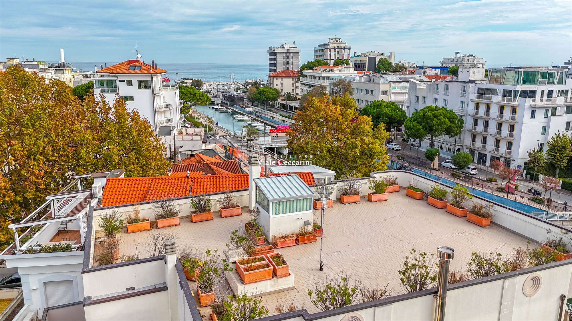 V205/AC - A pochi passi dal mare, dove l’orizzonte si fonde con le luci del porto canale di Riccione, proponiamo incantevole attico al terzo piano di moderna palazzina servita da ascensore. Rifugio sospeso tra cielo e mare, dove la luce naturale, filtrando attraverso il raffinato lucernario, accende di vita ogni angolo della zona living. Qui, lo sguardo si perde sulla terrazza panoramica affacciata sul porto: prolungamento ideale del soggiorno, che nei mesi più miti si trasforma in un salotto all’aperto, perfetto per serate estive sotto le stelle, cene memorabili e momenti di autentico relax. La cucina a vista, sapientemente inserita nella nicchia della zona giorno, dona continuità stilistica all’ambiente ed è inoltre servita dal pratico balcone, combinando così funzionalità e stile in un unico spazio armonioso. Il disimpegno conduce alla zona notte, dove due ampie camere matrimoniali, ciascuna con il proprio balcone, offrono riservatezza e comfort. Completano la zona due funzionali bagni finestrati con box doccia.